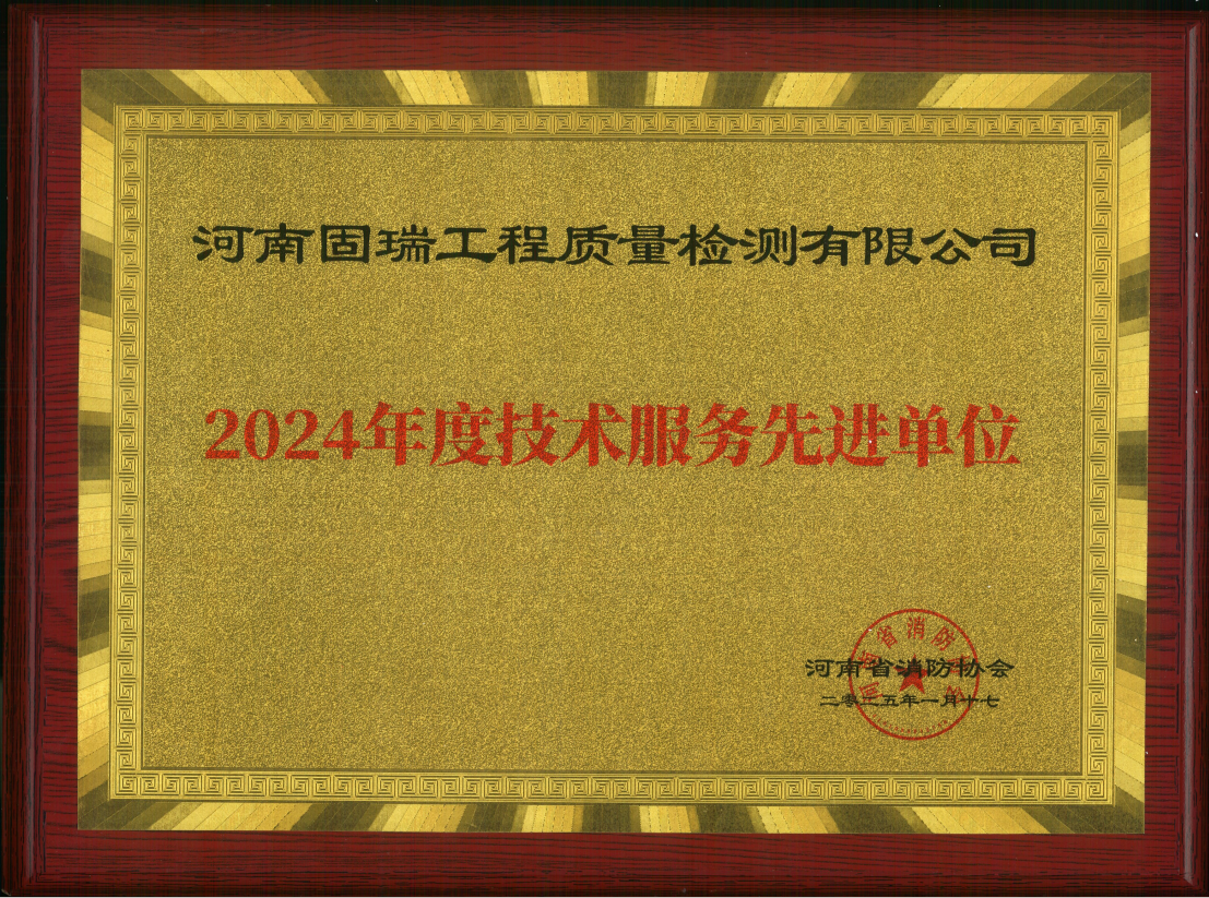 熱烈祝賀河南固瑞工程質(zhì)量檢測有限公司榮獲河南省消防協(xié)會2024年度技術(shù)服務(wù)先進單位!??!