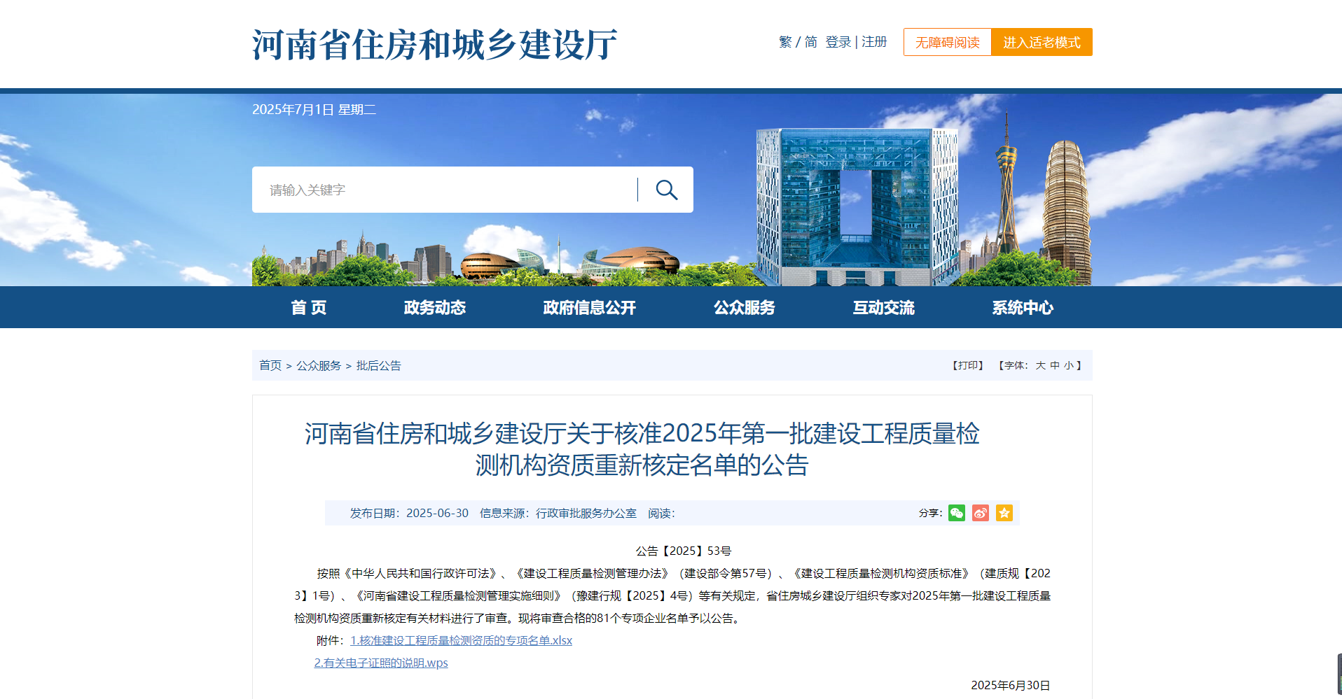 熱烈祝賀我司通過河南省住建廳2025年第一批建設(shè)工程質(zhì)量檢測機構(gòu)資質(zhì)重新核定?。。?